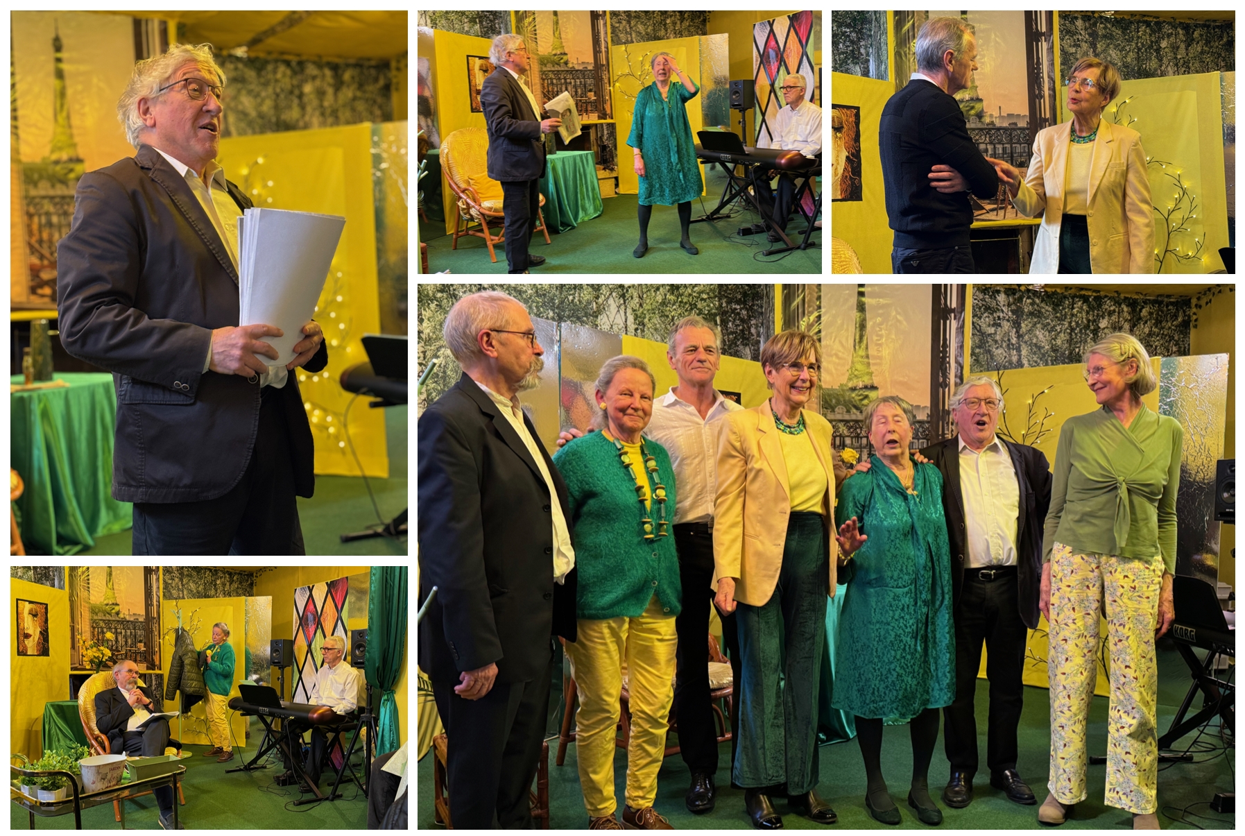 Bel après-midi dans une ancienne écurie transformée magnifiquement en salle de cabaret par le talent de décoratrice d’Elisabeth OUDIN qui nous accueillait. Sur le thème « Peut-on tout dire ? » Jean - Pierre BARRAULT et ses amis comédiens nous ont interprété 7 scènes inspirées de la comédie « Fallait pas le dire ! » écrite spécialement pour le couple Evelyne BOUIX, Pierre ARDITI par Salomé LELOUCH (fille d’Evelyne BOUIX et Claude LELOUCH). Un couple qui s’aime adore se chamailler sur des sujets aussi divers que le gâteau de Belle-Maman, l’argent ou la chirurgie esthétique. Dans ce festival de mauvaise foi où chacun campe sur ses positions, les répliques fusent comme des balles de ping-pong. Bravo aux comédiens car le rythme des répliques exigeait d’eux une performance qui fut saluée par les chaleureux applaudissements de nos adhérents.