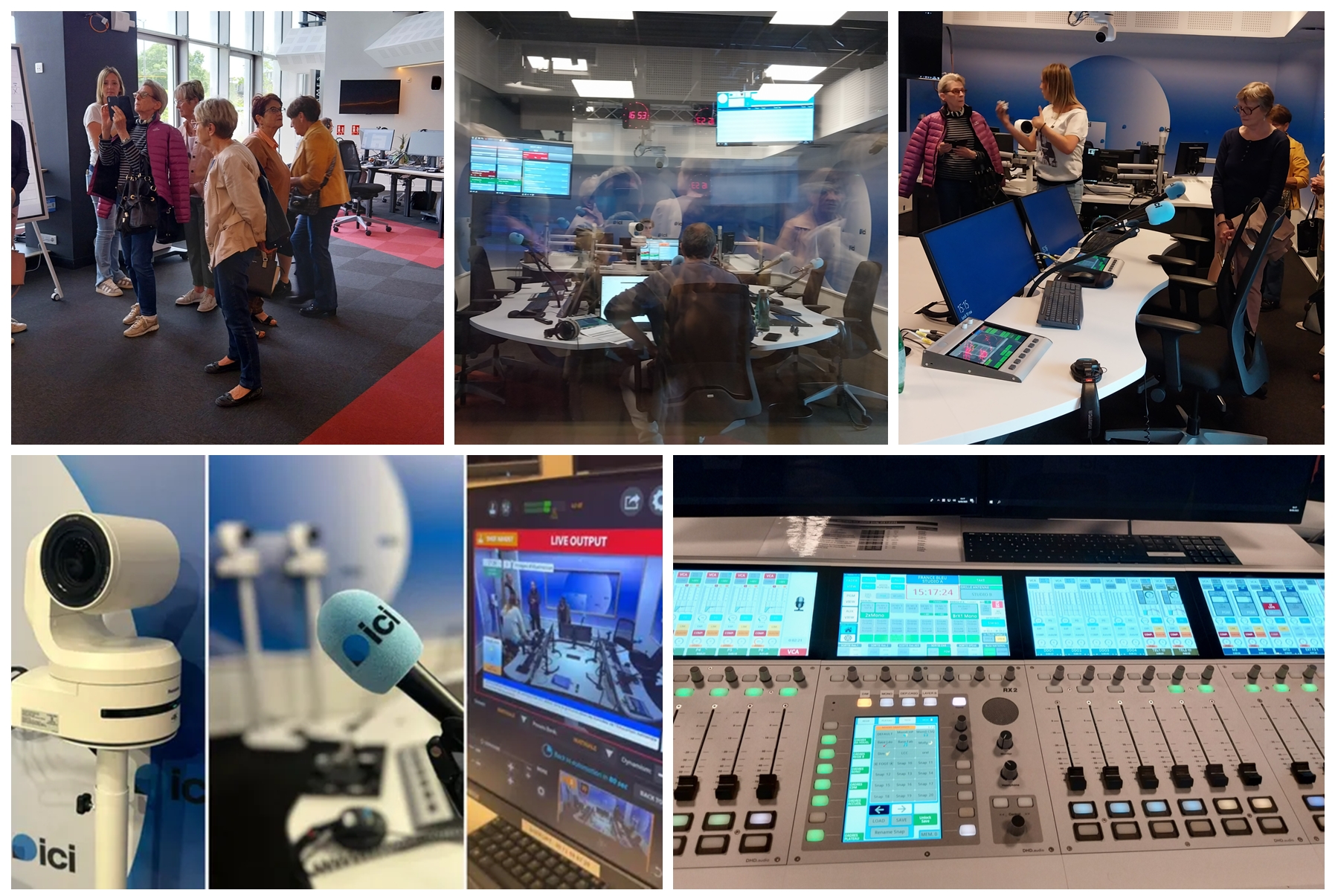 Nous sommes accueillis par Mélanie qui va nous guider avec enthousiasme au cours de notre visite, Tony Verbicaro en est le directeur depuis 2021 et ses 35 collaborateurs sont ravis de leur nouvel aménagement depuis novembre dernier, face à la salle de spectacles Arena. Nous avons eu des informations claires sur cette station qui est l'une des 44 stations locales réunies dans le réseau Radio -France. Ici-Champagne Ardenne diffuse dans les Ardennes, la Marne, le Nord de l'Aube et le Nord de la Haute Marne. Depuis Mars 2025, on peut regarder la Matinale sur FR3 (canal 3 de la TNT). Gilles Seydoux, responsable des programmes, nous a fait découvrir le déroulement d'une journée dans la station.
